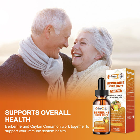 Organic Berberine Supplement Liquid Drops - Premium Berberine HCL 1500mg with Pure Ceylon Cinnamon-7 in 1 Natural Ingredients - Supports Immune System & Digestive System