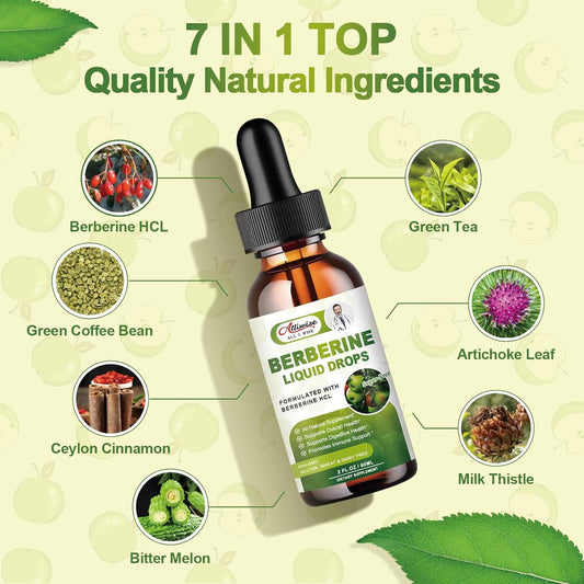 Organic Berberine Supplement Liquid Drops - Premium Berberine HCL 1500mg with Pure Ceylon Cinnamon-7 in 1 Natural Ingredients - Supports Immune System & Digestive System