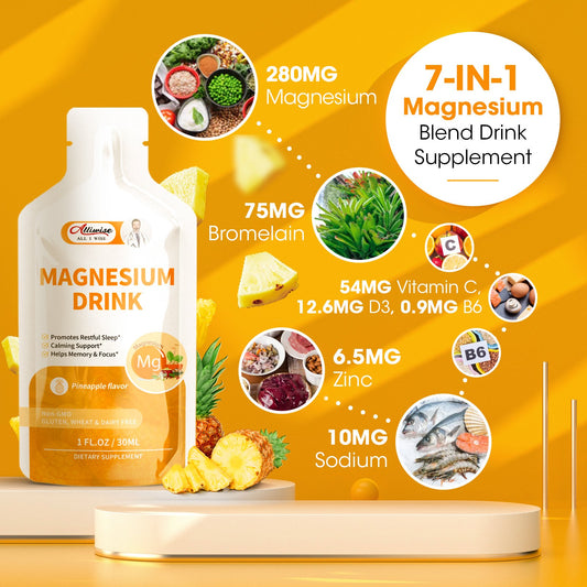 Magnesium Citrate Liquid 280mg Magnesium Drink Oral Solution with Vitamin, Zinc & Sodium Bromelain, Essential Magnesium Supplement Support Immune, Bone Health and Zzz, Pineapple Flavor, 10 Fl Oz
