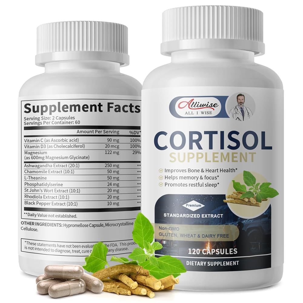 Alliwise Cortisol Support Capsules Balanced Botanical Support for Mind & Body Wellness