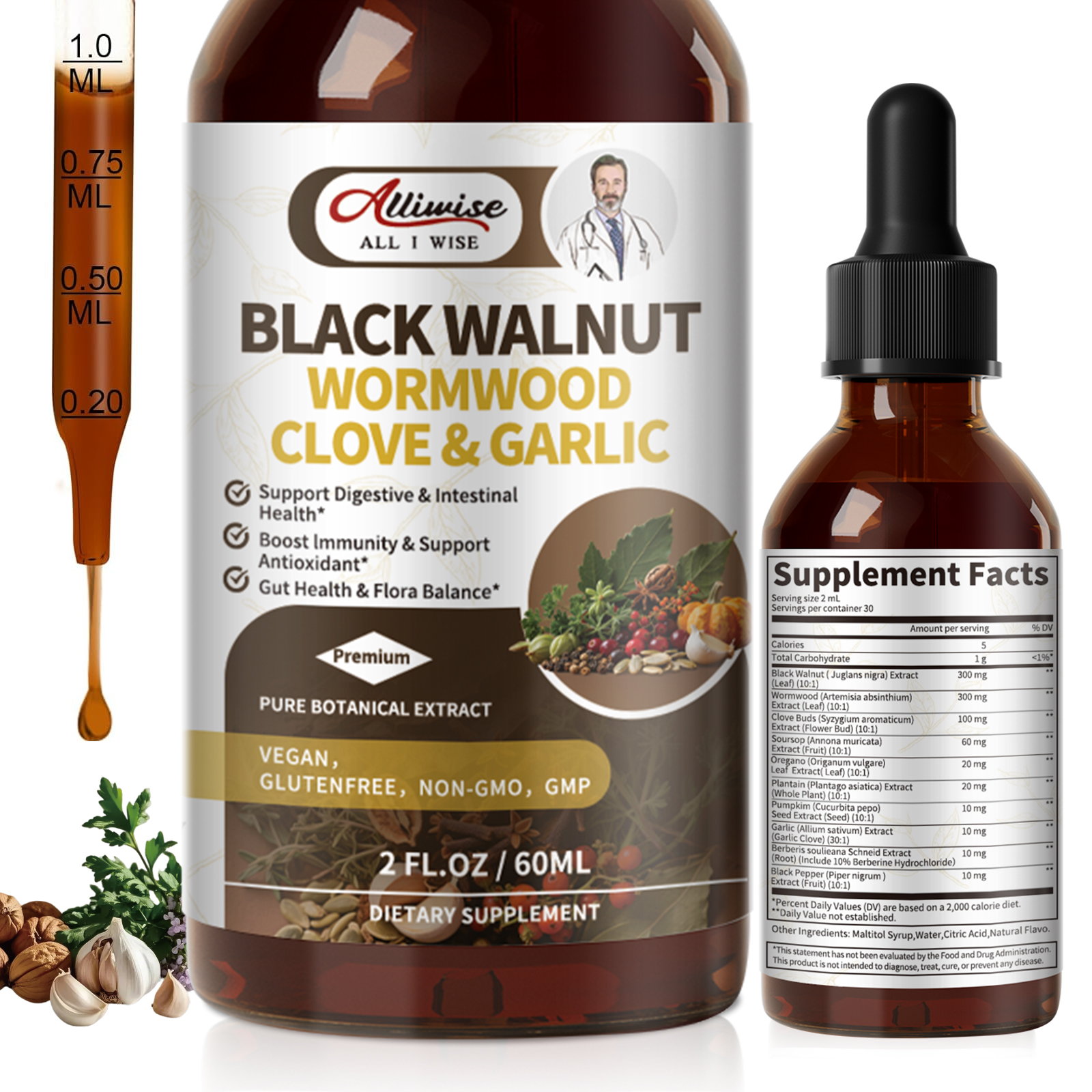 Alliwise Black Walnut Wormwood Tincture – Advanced Liposomal Herbal Cleanse